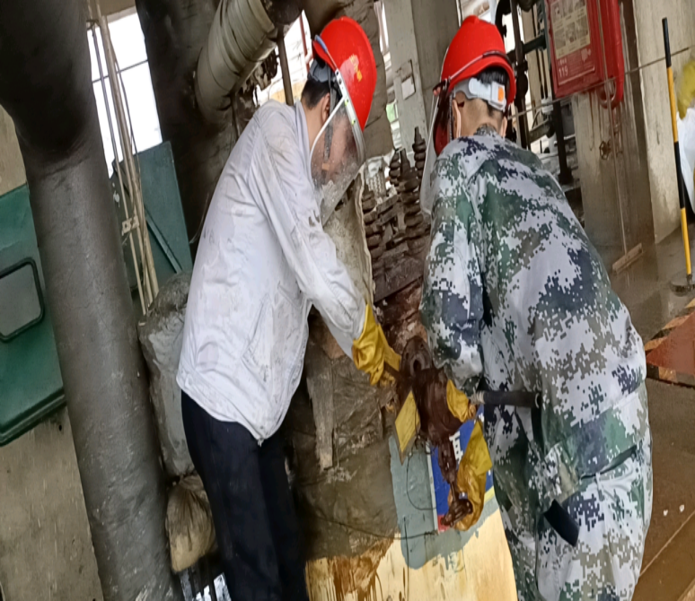 每次走進(jìn)現(xiàn)場,我都會有一種“未見其人,先聞其聲”的感覺,錘子的敲擊聲、檢修負(fù)責(zé)人的交底聲,還有噼里啪啦的雨聲,聲聲入耳,像一首和諧的樂章。