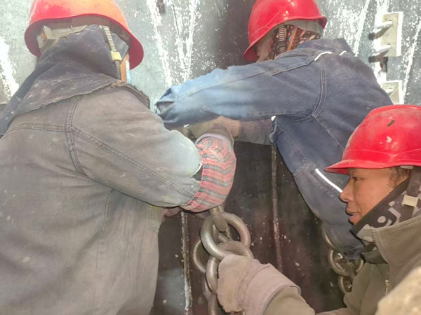“時間緊、任務重”是本次大修的關鍵詞,而“協同作戰”則是破題的核心密碼。隨著水泥主管副總經理指令下達,全體人員勁往一處使,配合吊機將重型筒體精準移送至檢修點位;電儀車間嚴抓安全交底與作業票核驗,筑牢用電安全屏障。在檢修現場,焊工老梁蜷縮在狹小管道縫隙中,仰躺、側翻,用近20年的精湛手藝焊出完美焊縫;身材精悍的檢修工蹲守數小時,以氣割為筆勾勒工作藍圖……焊花與弧光交織,汗珠與寒風共舞,這群嚴冬里的“太陽花”,用樸實無華的堅守詮釋著崗位敬畏與責任擔當。